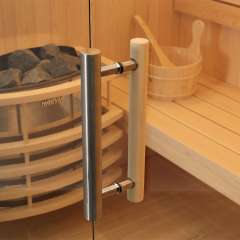 V savni je uporabljen visokokovosten svetel borov les, ki se pojavlja v severnem Sredozemlju in živi od 200 do 250 let. Les ima zelo dobre lastnosti in je izredno trd ter trpežen in tako idealen za uporabo v savni. Njegova površina pa je zelo prijetna, kar zaznamuje kakovosten videz savn.